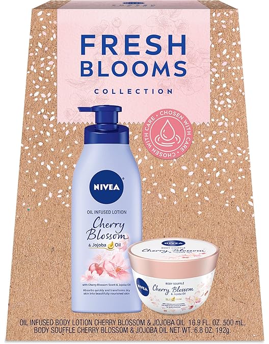 Amazon Com Nivea Fresh Bloom Gift Box Nivea Lotion And Nivea Body Souffle Cherry Blossom And Jojoba Oil 2 Piece Skin Care Gift Set Beauty Personal Care